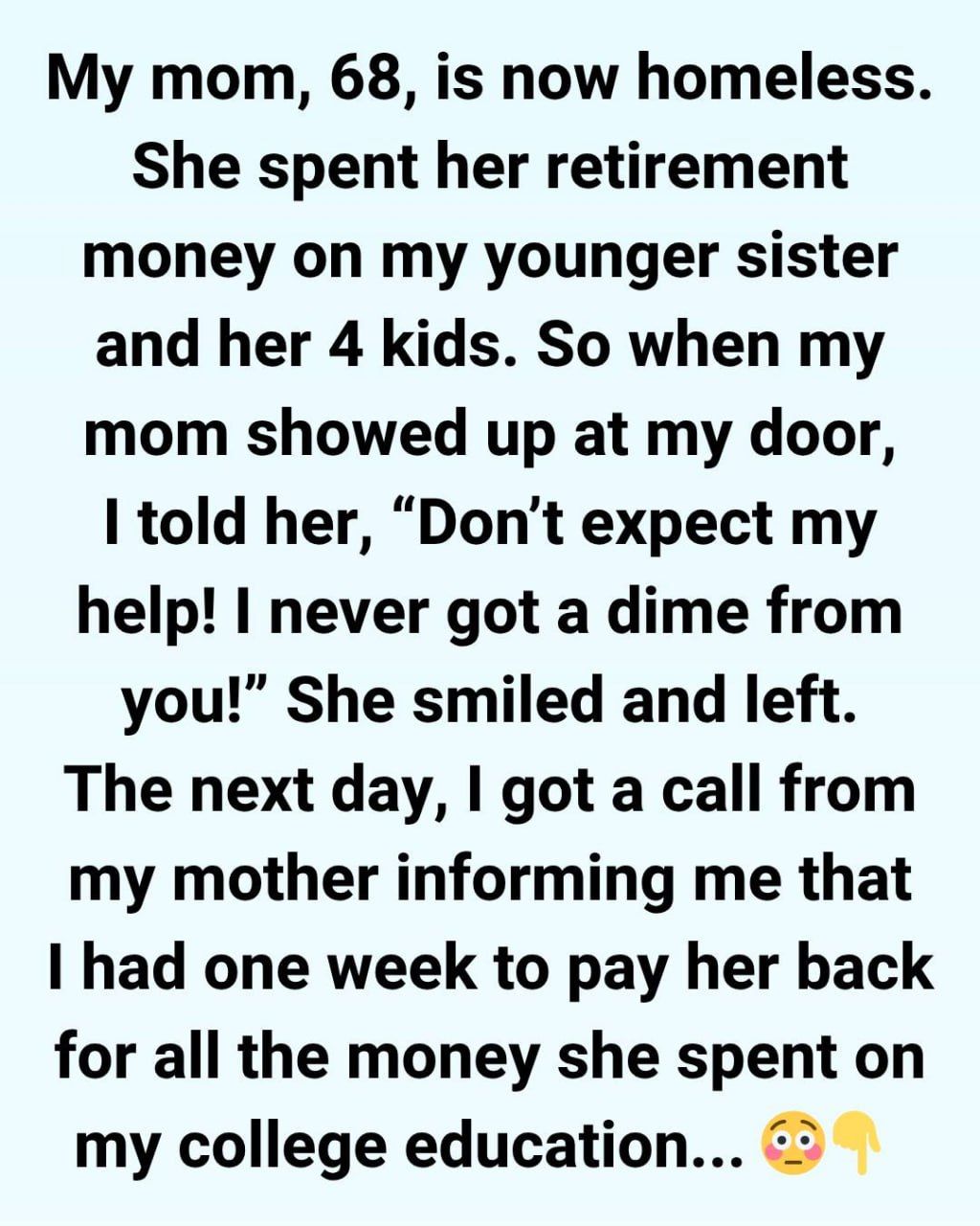 I remembered the conversation from three years ago. The one where she tearfully admitted her retirement fund was gone. Not dwindled, not invested poorly, but gone. Emptied. Because of my sister. My older sister. The one who had always been Mom’s favorite, her special little bird, too delicate for the harsh realities of life.
