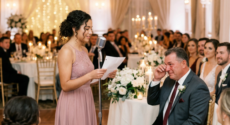 The spotlight illuminated her slightly trembling posture beside the main head table. The night of the wedding she stood up with a piece of paper that was visibly shaking in her hands.