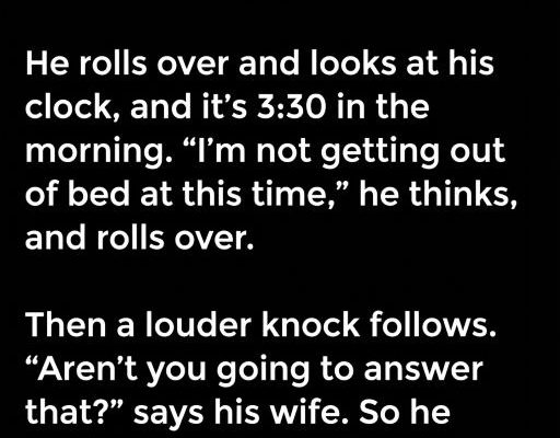 As he drifted back to sleep, he realized that the unexpected knock had turned an inconvenient moment into a reminder: even in the quiet hours of the night, a simple decision to open a door can change someone else’s story.